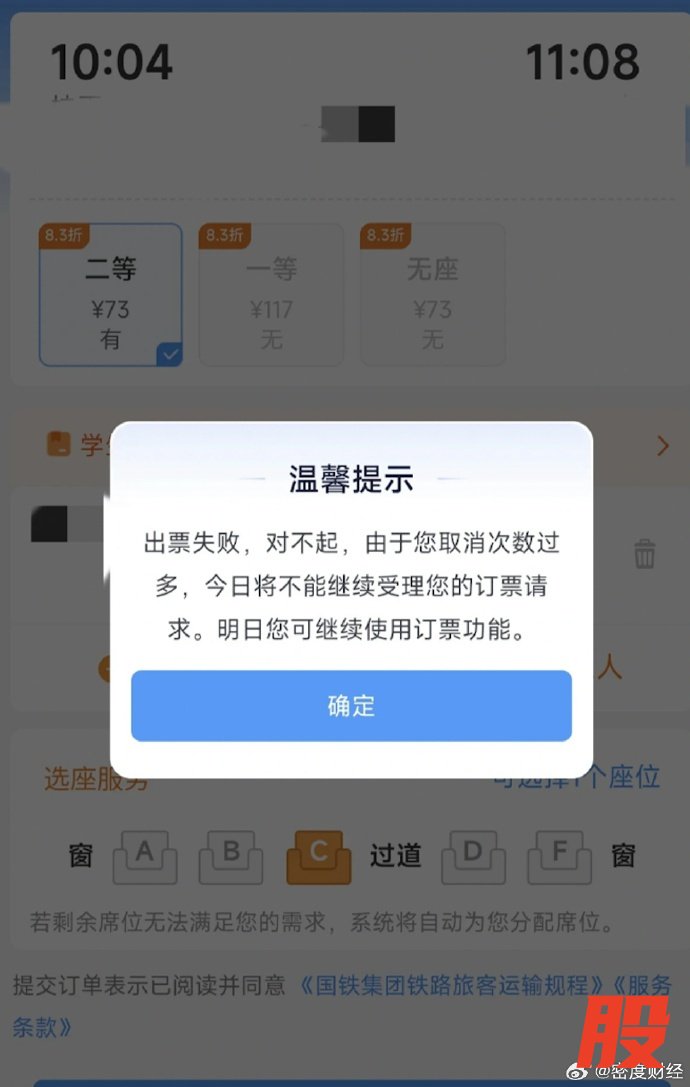 对此,密度财经致电12306官方,接线客服表示,每日取消3次订单后,账户当日购票权限即被锁定,次日零点自动恢复。对于确有紧急需求的旅客,客服建议可通过亲友账户代购,并特别提醒春运期间务必认准官方渠道,谨慎使用第三方购票软件。
